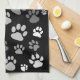 Cool Stylish Black & White Scattered Paw Prints Tea Towel
