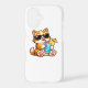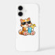 Cute cat wearing sunglasses and enjoying a refreshing drink – perfect summer vibe design.