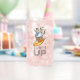 A stylish glass featuring an ice cool polar bear enjoying a cold drink and a cooling hand fan while riding a bright yellow surf board. A chilled out design for the summer. Use "Personalise this template" to change the "SURF'S UP" text if desired; text changes are reflected on both sides.