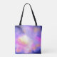 An elegant tote bag with a nice combination of soft pastels and bright colours. A colourful abstract painting with a cosmic space image in pink, purple and yellow watercolors.  The colours blend and mix together creating luminous ethereal clouds with little twinkling stars peppered throughout.