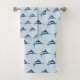 Cool navy blue swordfish pattern on light blue bath towel set.