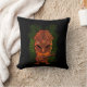 This black cushion is decorated with a cool tiki statue and palm leaves making it a great accessory for a masculine bedroom, deck, patio or pool area.