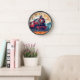 Wall Clock, 25.4 cm Round Black Wooden Frame