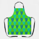 This apron has a Bauhaus design of repeating trapezoids in shades of blue and green.