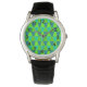This men's watch has a Bauhaus design of repeating trapezoids in shades of blue and green.
