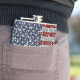 The flask itself is fine. It’s a cheap flask, obviously bought in bulk, however am prepared to overlook that. Given that it is a personalized item, I would have liked to have seen gift boxing instead of the generic packaging. Terrible printing, and/or quality. It’s a cheap, tacky vinyl. It is not cut straight and is also applied in a way that it is overhanging the bottom, causing the glue to catch on items and it will eventually roll and tear, damaging the wrap.
