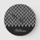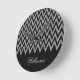 Cool trendy chevron zigzag silver faux glitter round clock