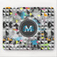 Cool trendy geometric monogram metallic greys triangles pattern, colourful watercolours splatters stains, metallic effects greys, white, black triangles colours, vibrant neon pink, blue, green, orange yellow, white splatters, retro pattern, artistic, modern, unique, abstract, summer trendy colours, fashion, hipster, awesome, popular, custom. Personalise your initial and name or favourite words, or delete the words for image only, image print.