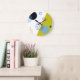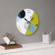Cool, trendy, modern, Memphis green blue geometric Large Clock