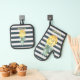 Cool Tropical Gold Pineapple Navy Blue Stripes Oven Mitt & Pot Holder Set