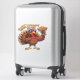 The stick looks amazing. Unfortunately, it would not stick on our suitcase as it was textured. When we found a non-textured (smooth) suitcase, the sticker stuck and looks great. The printing looked awesome.