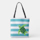 Fun sea turtle with sunglasses beach bag with custom name. Cool shades of blue and greens or change colours as preferred.