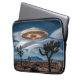 Cool UFO laptop sleeve. Features a UFO or UAD floating over a desert with Joshua trees.