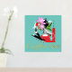 A cool coffee bar sign/poster with an urban vibe, this design features a collaged beautiful woman drinking a cup of coffee with a fox standing in her cup. Flowers and foliage adorn her hair in this whimsical poster with real gold foil text spelling out "Coffee Bar". Great for home or business and available in a variety of sizes.