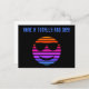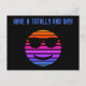 Send some cool greetings with this postcard that's ready to be customised with your own message, or leave the "Have a totally rad day!" message as is and pen your own greeting on the reverse side. Features an illustration of a cool emoji face wearing sunglasses with vaporwave style stripes in orange, red, magenta, purple and blue set against a black background.
