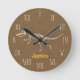 For kids who love dinosaurs, they will adore this dinosaur themed clock which makes a great decorative piece for their room. The design features a dinosaur skeleton loosely based on the velociraptor against a dirt texture background. The clock face is uniquely created using skeleton bones arranged in Roman numerals. Personalise with child's name.
