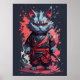 Cool Watercolor Grey Ninja Cat Warrior Poster
