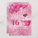 Girly cupcake hot pink balloon calligraphy sweet sixteen design.