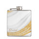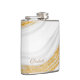 The flask itself is fine. It’s a cheap flask, obviously bought in bulk, however am prepared to overlook that. Given that it is a personalized item, I would have liked to have seen gift boxing instead of the generic packaging. Terrible printing, and/or quality. It’s a cheap, tacky vinyl. It is not cut straight and is also applied in a way that it is overhanging the bottom, causing the glue to catch on items and it will eventually roll and tear, damaging the wrap.