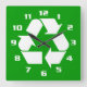 COOL WHITE RECYCLE SYMBOL GO GREEN SQUARE WALL CLOCK