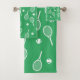 Cool White Retro Tennis Racquets Pattern Green Bath Towel Set