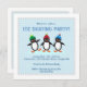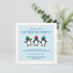 A trio of penguins ice skate on a little pond against a snowy background of icy blue, inviting your guests to a fun ice skating themed party.