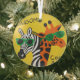 Cool Zebra Giraffe Cartoon Illustration Glass Tree Decoration