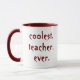 This coffee mug features the text Coolest. Teacher. Ever. in black. Perfect for the coolest teacher you know!