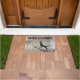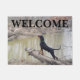 This door mat has a photo of a black and tan coon hound at the river and the word WELCOME across the top.