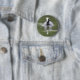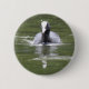 This button features a photograph of a Coot swimming on a tidal river. This beautiful British bird is black with a white beak and marking on its head. It is a common species but can sometimes be difficult to see because it is shier than some other waterfowl.