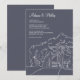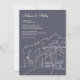 Destination wedding New York City, Central Park Cop Cot gazebo wedding ceremony invitation. Grey with white silhouette illustration of this popular Central Park wedding location. Easy to personalise wedding template.