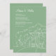 Central Park wedding invitation. Destination wedding New York City, Central Park Cop Cot gazebo wedding ceremony invitation. Sage green with white silhouette illustration of this popular Central Park wedding location.