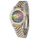 The watch is very nice, the picture is great and the watch looks like quality. The only problem I am having with it is that it is a little too large, and I also can't figure out how to open the clasp. No directions came with it. Very good. The printing is perfect and the watch keeps good time.
