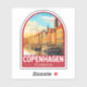 Copenhagen retro vector travel design. Copenhagen, Denmark’s capital, sits on the coastal islands of Zealand and Amager. It’s linked to Malmo in southern Sweden by the Öresund Bridge.