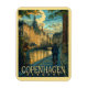 Discover the charm of Copenhagen with this stunning vintage-style travel poster. The illustration features a man cycling past romantic buildings under a beautiful blue sky. Perfect for a gift for travel enthusiasts.