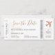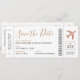 Boarding Pass Save the Date Aeroplane Ticket Cards with an elegant minimalist modern design with a copper-coloured aeroplane with a heart. All text, lines, and background colours are editable so you can create your own retro boarding pass which was designed with a destination wedding or travel theme wedding or birthday in mind. Visit the Custom Paper Works designer collection for coordinating items.