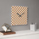 A brown and white checkerboard pattern fills the image. The square tiles are evenly spaced, creating a uniform and orderly geometric design.