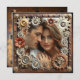 Steampunk metal, flowers, hearts and gears in copper, gold and silver wedding invitation. Upload your favourite picture in the personalise area and edit the text on the back to add your own wedding info.