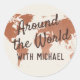 Our tan and copper globe sticker can be personalised with your name for an "around the world mitzvah, birthday, bridal or baby shower. Use for envelope seals, favour labels and DIY party decor projects!