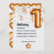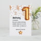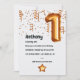Trendy copper foil number balloon first birthday party invitation with a masculine flair.