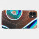 Abstract digital art resembles a 3D glossy surface of hammered copper with holes drilled down to an azure blue plane of existence... Or something like that. Let your mind wander...