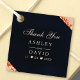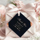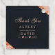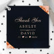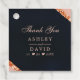 Express your gratitude with these elegant navy, blush pink, and copper geometric wedding thank you tags. The modern design features a luxurious navy background with a blush pink border, accented by shimmering copper geometric details. Personalise the tags with the names of the couple and the wedding date for a unique and memorable touch.
