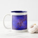 A flutter of sapphire, copper, and white fractals in the shape of butterflies dance across a royal blue background, overlaid with copper framing and sparkling bright blue gems.