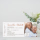Copper or light bronze aeroplane design on a boarding pass save the date card for a travel theme or destination wedding, with room on the side of the ticket for a photo, travel and accommodations details on the back. The fun retro computer font details include little arrows, bar code, and box for a seating assignment. Destination wedding guests need extra travel and accommodation information earlier than a local wedding. If you want to simply get the word out fast while you work out the travel plans, the design on the back can be deleted, just click 'customise further.'