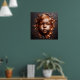 An abstract portrait of a young boy seamlessly embedded in charcoal granite. The artistically crafted face, sculpted in copper metal, takes on a 3d allure. This unique and imaginative artwork captures the purity and charm of childhood innocence with a touch of artistic flair.