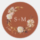Copper Fall Monogram Floral Wreath Envelope Seal. This elegant and rustic wedding envelope seal features hand-painted watercolor burnt orange and terracotta leaves, cream and beige dahlias, and beautiful rust-coloured roses perfect for a fall or autumn wedding! This design is part of the Autumn Romance collection that can be viewed by clicking on the above collection link.
