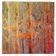 A trio of foxes rendered in warm autumn tones of gold and copper on a photographic image of grey striated stone from the coast of Maine. Tree trunks form vertical, visual striping coloured with a batik effect.. Use as a decorative accent or trivet. Zazzle also offers frames and boxes for its tiles, which are available in two sizes. A wonderful home accent or gift for any animal, nature or fox lover. Also matches my copper toned house number tiles; use as an end tile. Original artwork, photo and design by Tuzi Williams.