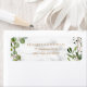 Modern, elegant and trendy, this wedding return address label design features a faux copper geometric embellished with watercolor eucalyptus greenery, over a faux white marble texture, with text in a matching copper colour. Part of a matching set. Copyright Elegant Invites. All rights reserved.