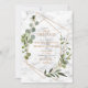 Modern and trendy, this pretty wedding Save the Date card design features a faux copper geometric embellished with watercolor eucalyptus greenery, over a faux white marble bark texture. The back of the card features your favourite engagement photo. Part of a matching wedding suite. Copyright Elegant Invites, all rights reserved.
