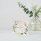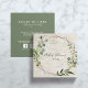 A beautiful square business card featuring watercolor eucalyptus greenery decorating a faux copper foil geometric wreath, set against a faux birch bark background, and personalised in the middle with your name and job title in a combination of trendy handlettered and sans serif typography. The back of the card displays all your contact information, in white text on a coordinating green background. The typography has been carefully designed to be easy to read. This business card will be perfect for florists, event planners, designers, landscape artists, Wedding Coordinator, spa salon, and more. Copyright Elegant Invites, all rights reserved